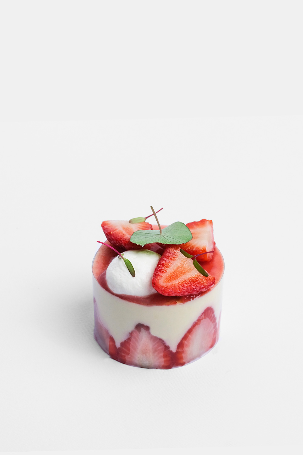 توت فرنگی ,ژنواز کیک اسفنجی سبک و نرم که با تخممرغ کامل، شکر و آرد تهیه میشود. ,سیروپ لیمو یک شربت شیرین و ترش که از ترکیب آب، شکر، زست لیمو و آب لیمو تهیه شده و بهعنوان طعمدهنده در دسرها و نوشیدنیها استفاده میشود. ,کرم شانتی خامه فرمگرفتهای که با شکر و وانیل طعمدار شده است. بهعنوان رویه دسرها استفاده میشود و طعمی شیرین و بافتی سبک دارد. نام آن از شاتو دو شانتیلی در فرانسه گرفته شده است. ,کرم موسلین ,کنفی توتفرنگی یک ترکیب میوهای که از توتفرنگی، شکر و آگار آگار تهیه شده و بافتی نرم و طعمی شیرین و ترش دارد که بهعنوان پرکننده یا رویه در دسرها استفاده میشود. ,گلیز آندرکات قرمز یک رویه براق که از ترکیب شکلات سفید، روغن هسته انگور و رنگ قرمز تهیه شده و بهعنوان رویه دسرها استفاده میشود و ظاهری جذاب و طعمی شیرین دارد. |